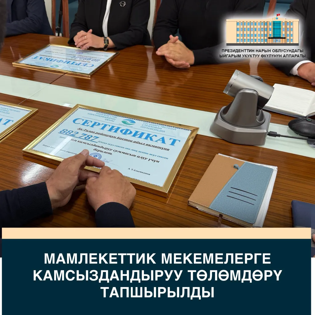 МАМЛЕКЕТТИК МЕКЕМЕЛЕРГЕ КАМСЫЗДАНДЫРУУ ТӨЛӨМДӨРҮ ТАПШЫРЫЛДЫ