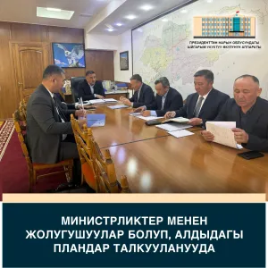 МИНИСТРЛИКТЕР МЕНЕН ЖОЛУГУШУУЛАР БОЛУП, АЛДЫДАГЫ ПЛАНДАР ТАЛКУУЛАНДЫ