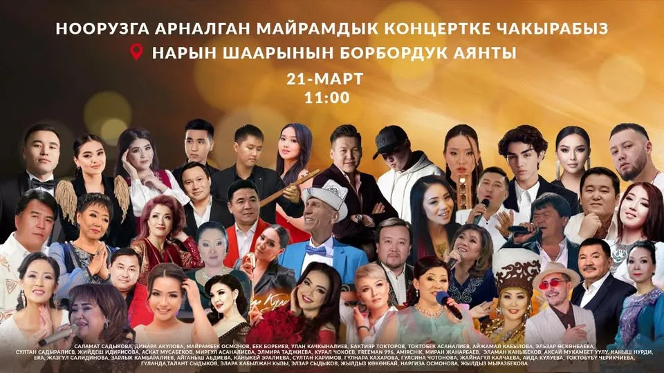 21-март күнү Нарын шаарынын борбордук аянтында өтүүчү майрамдык иш-чара 3 негизги бөлүктөн турат: