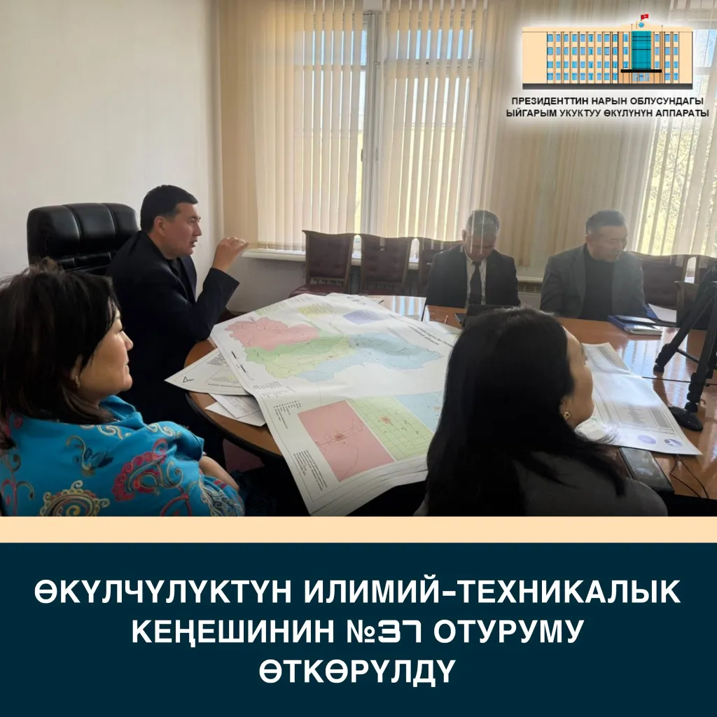 Президенттин Нарын облусундагы ыйгарым укуктуу өкүлүнүн аппаратынын Илимий-техникалык кеңешинин №37 отуруму өткөрүлүп, аны ыйгарым укуктуу өкүлдүн биринчи орун басары Р. Сапарбеков алып барды.