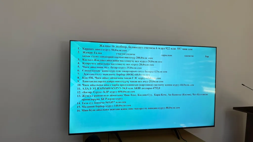 14-апрель күнү ыйгарым укуктуу өкүл Жумгал районуна иш сапары менен барып, аймакты социалдык-экономикалык жактан өнүктүрүү боюнча негизги багыттарды талкуулады.